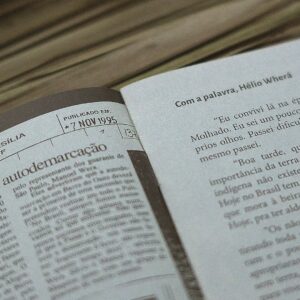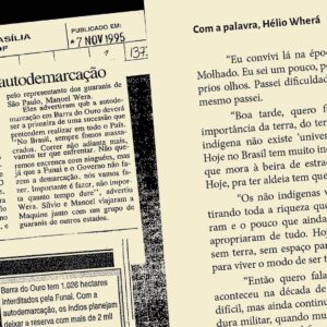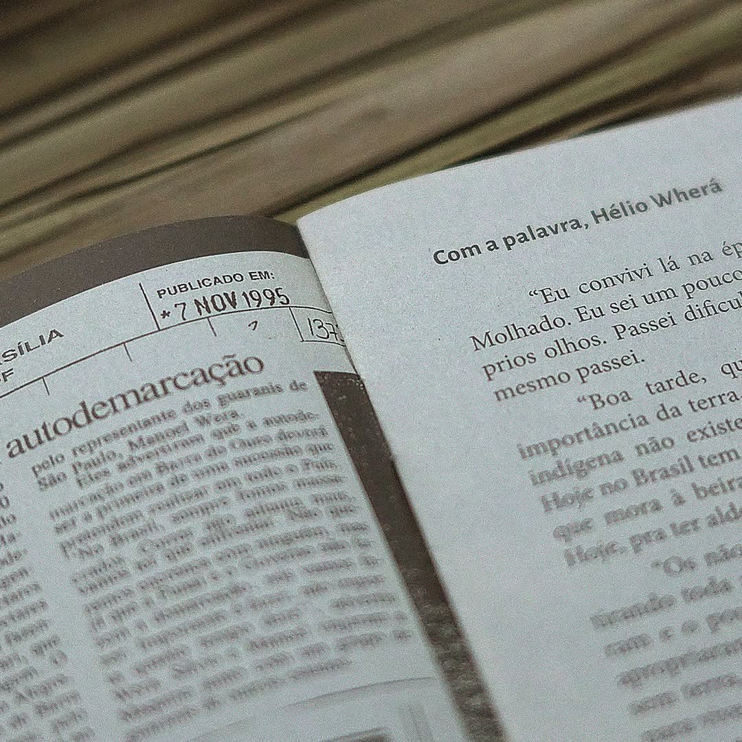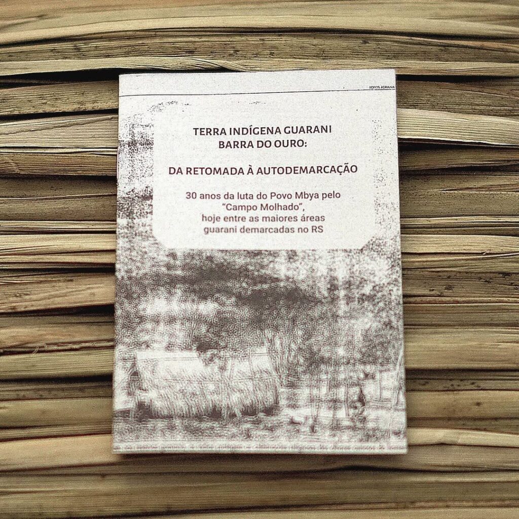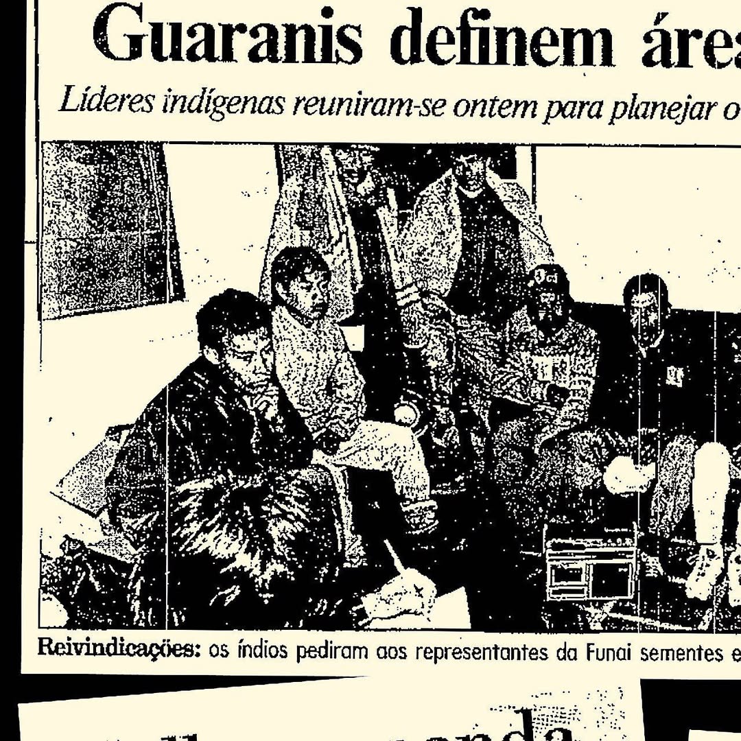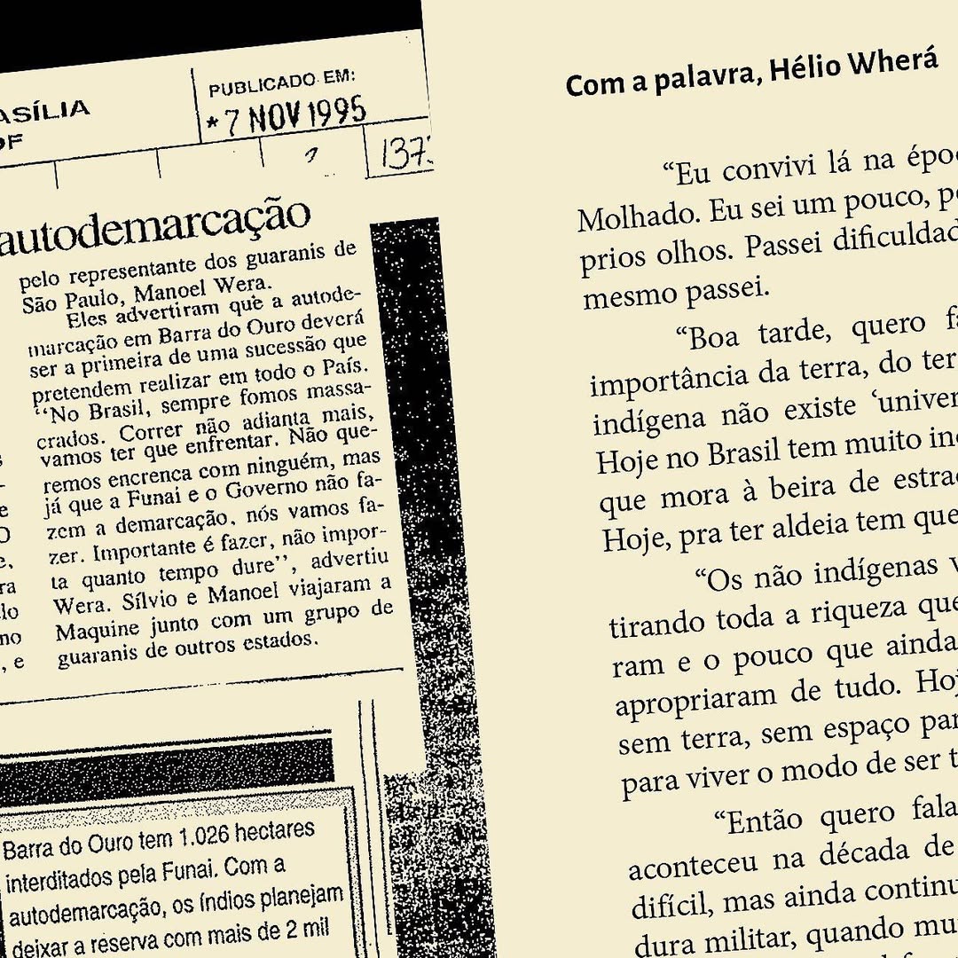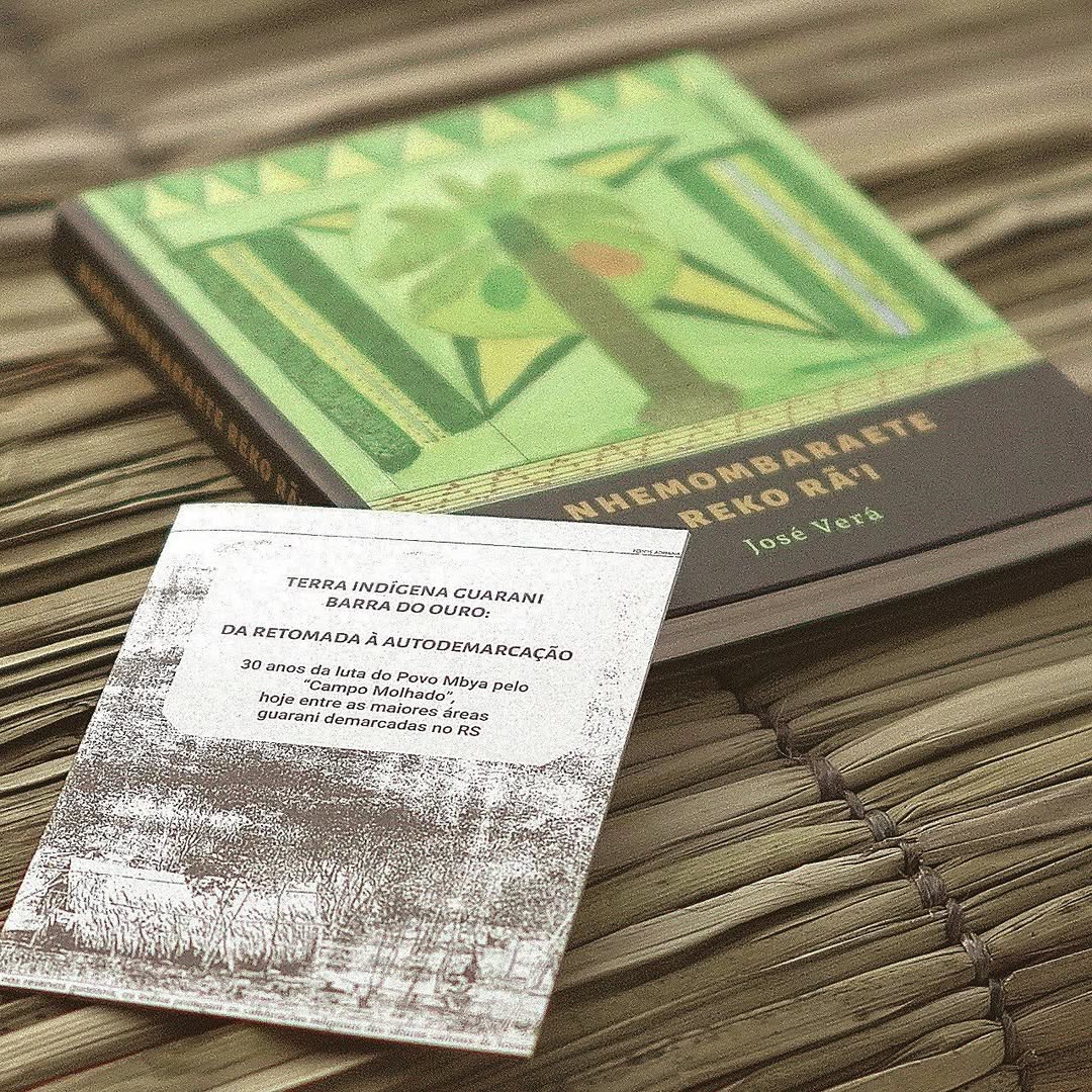 A zine de bolso, pb e papel jornal, celebra os 30 anos da luta pela terra indígena onde vive José Verá, autor do livro Nhemombaraete Reko Rã’i. Através de recortes de jornal dos anos 1990 e processos da Funai junto do testemunho de Hélio Wherá – relatado desde o acampamento em Brasília – a zine narra cenas de guerra e conquistas guarani no Rio Grande do Sul, resultando na permanência da diversidade cultural e no território de promoção da biodiversidade até hoje.