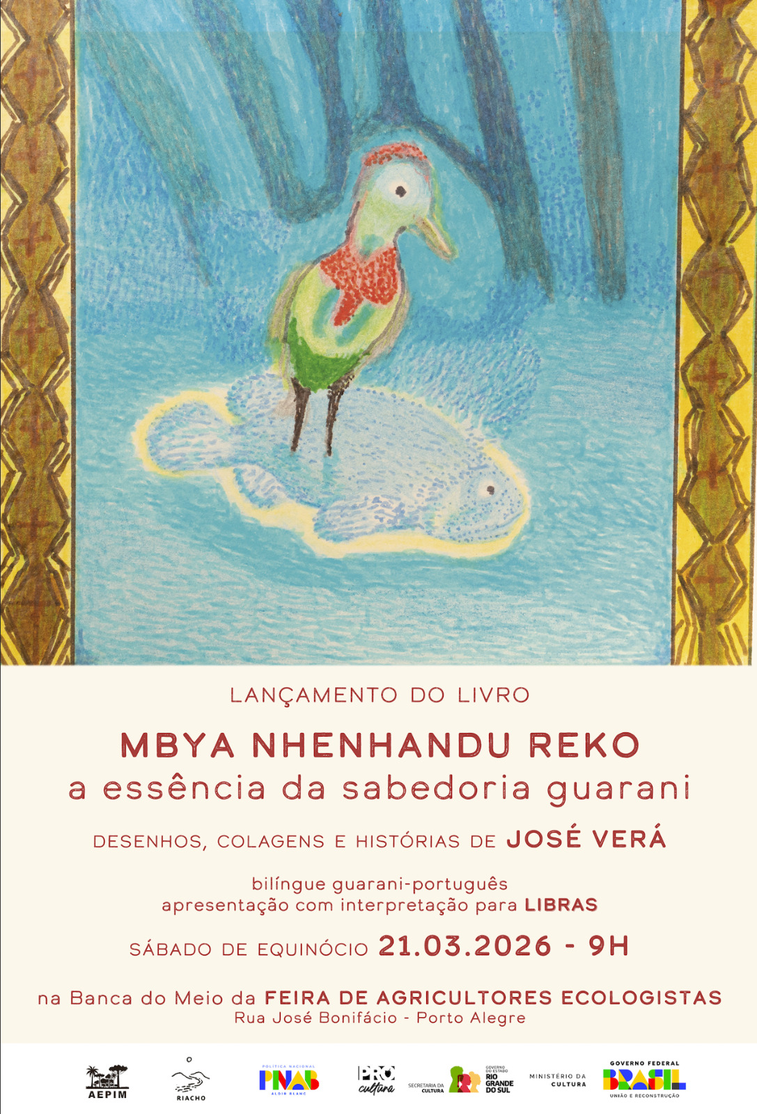 O projeto foi executado com recursos da SEDAC/RS, PRÓ-CULTURA no Edital nº 31/2024 PNAB RS – Memória e Patrimônio pela AEPIM (Associação de Estudos e Projetos com Povos Indígenas e Minoritários), organização não governamental que atua desde 2009 em parceria com povos indígenas, quilombolas, comunidades pescadoras e de agricultura familiar (@aepimrs/aepim.org.br). A publicação tem edição e projeto gráfico do selo editorial Riacho (@riacho.me/riacho.me) ativo desde 2016 com foco no fazer poético e na diversidade socioambiental.